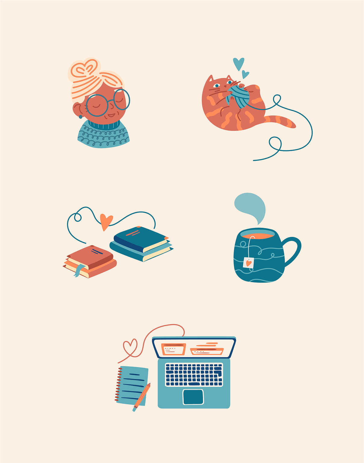 - des pictogrammes rassurants et tout doux qui illustrent l’esprit cozy de l’identité ainsi que les valeurs et prestations de ABClivre